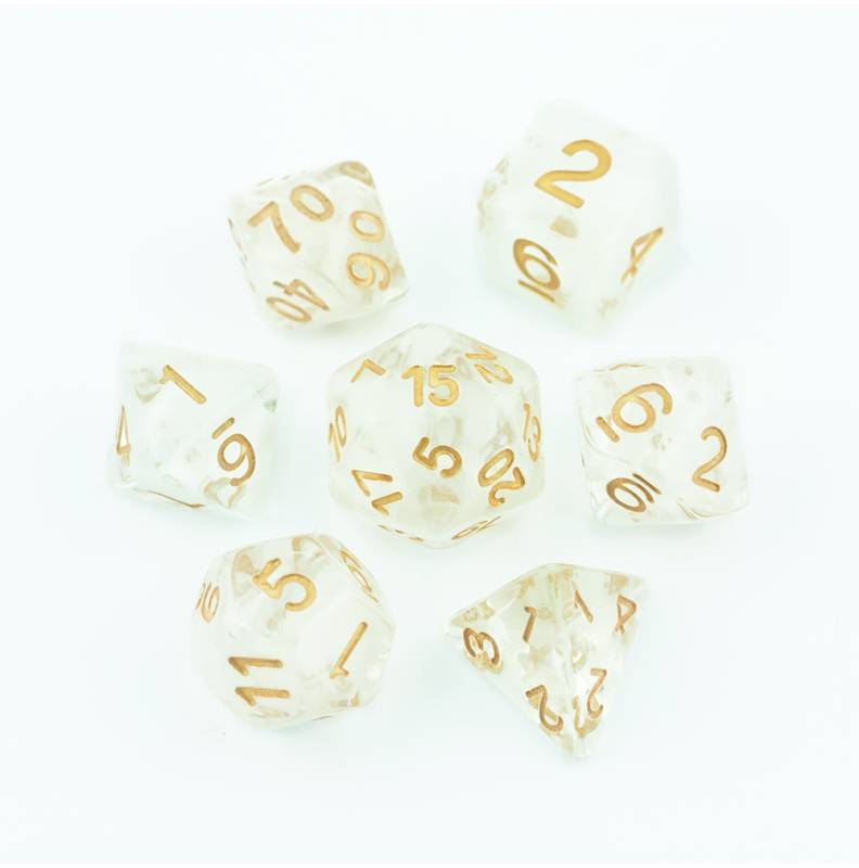 Abyss - białe (malowane na złoto) kości do gier fabularnych (RPG) - 7 sztuk w zestawie.