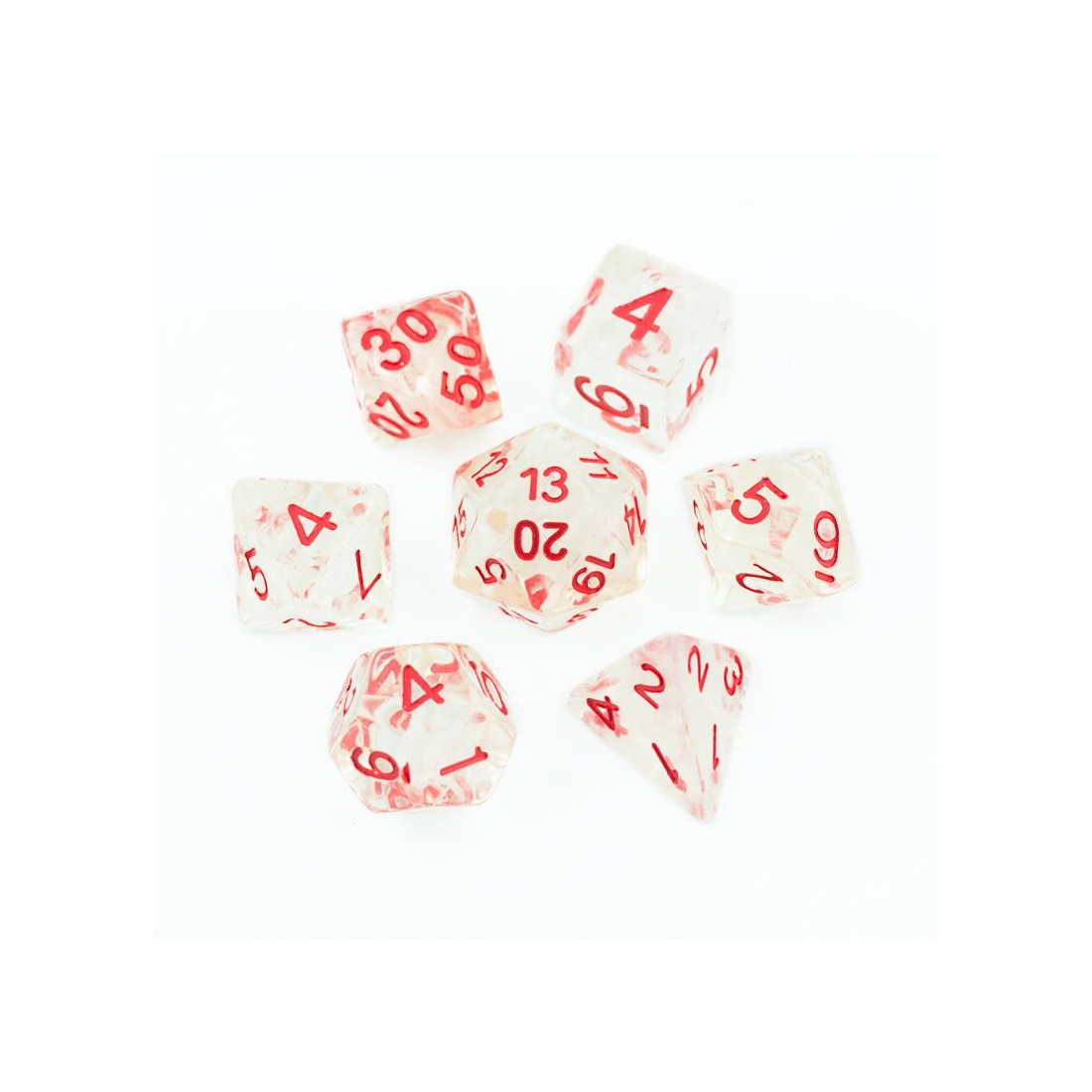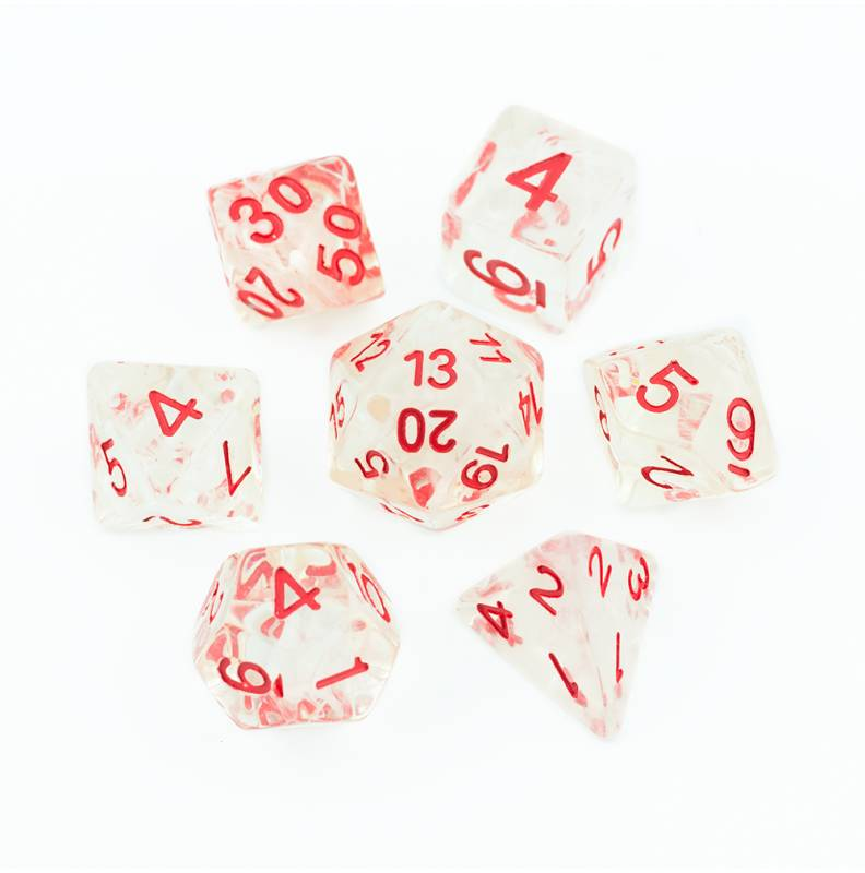 Abyss - białe (malowane na czerwono) kości do gier fabularnych (RPG) - 7 sztuk w zestawie.