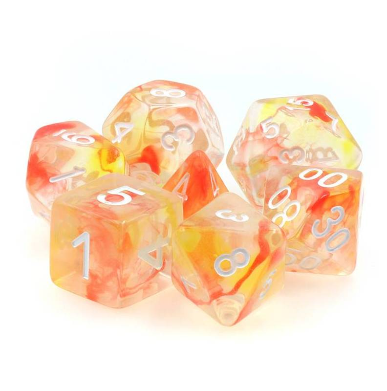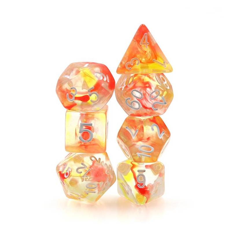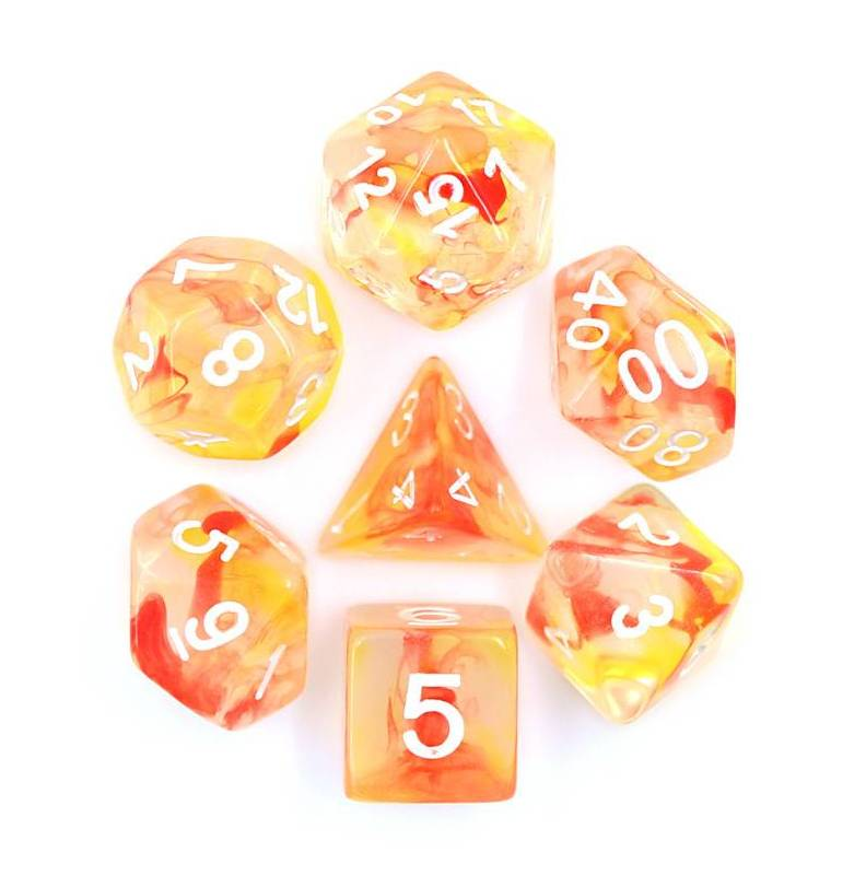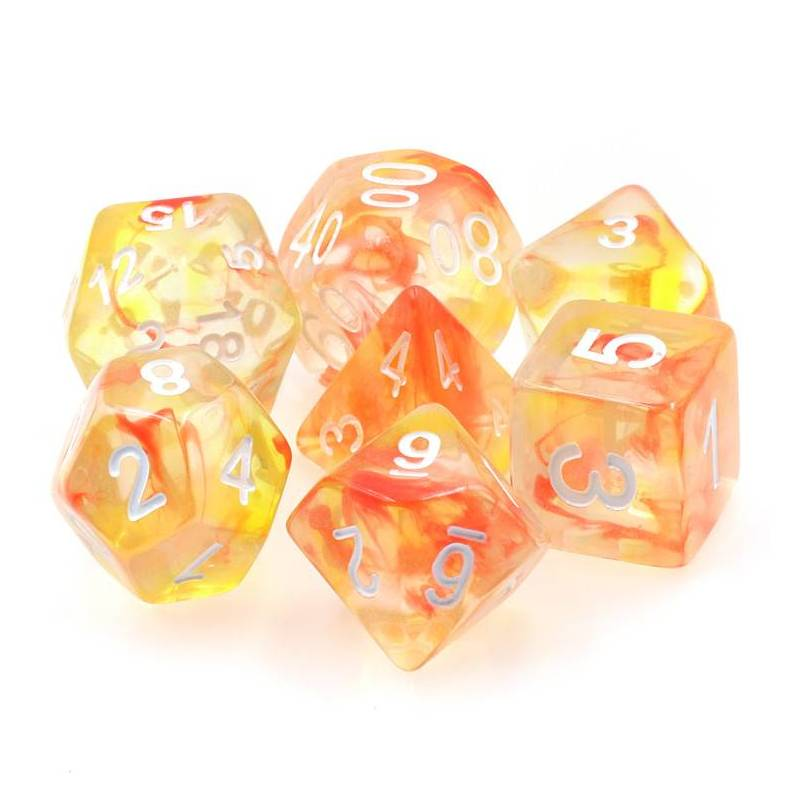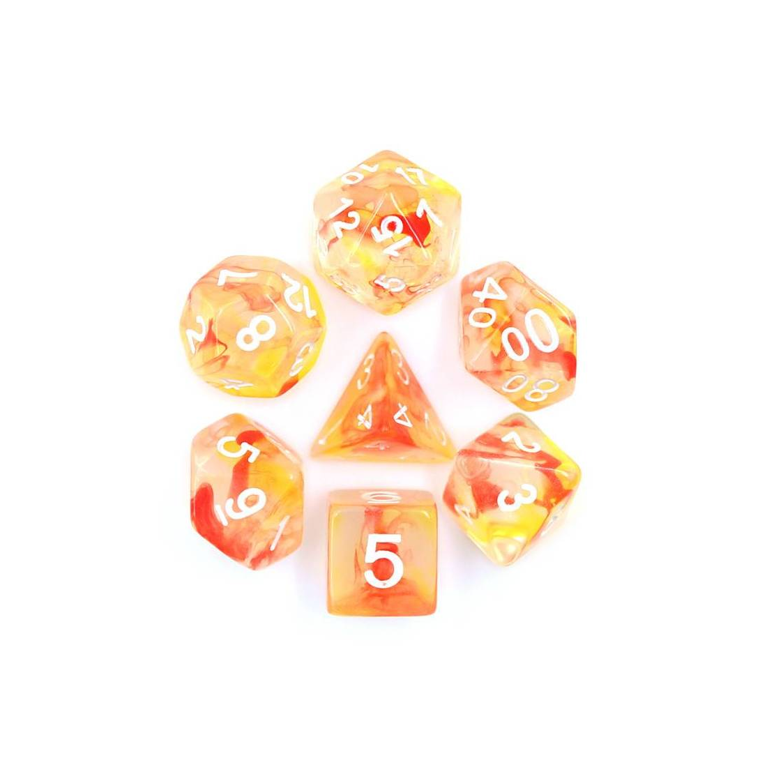 Abyss - pomarańczowo-żółte kości do gier fabularnych RPG) - 7 sztuk w zestawie.