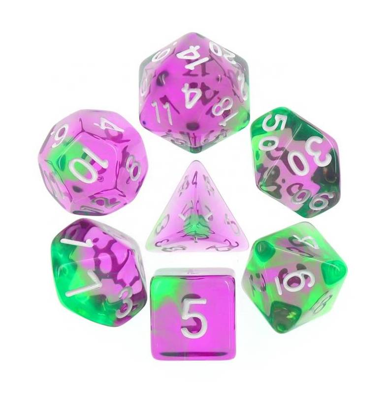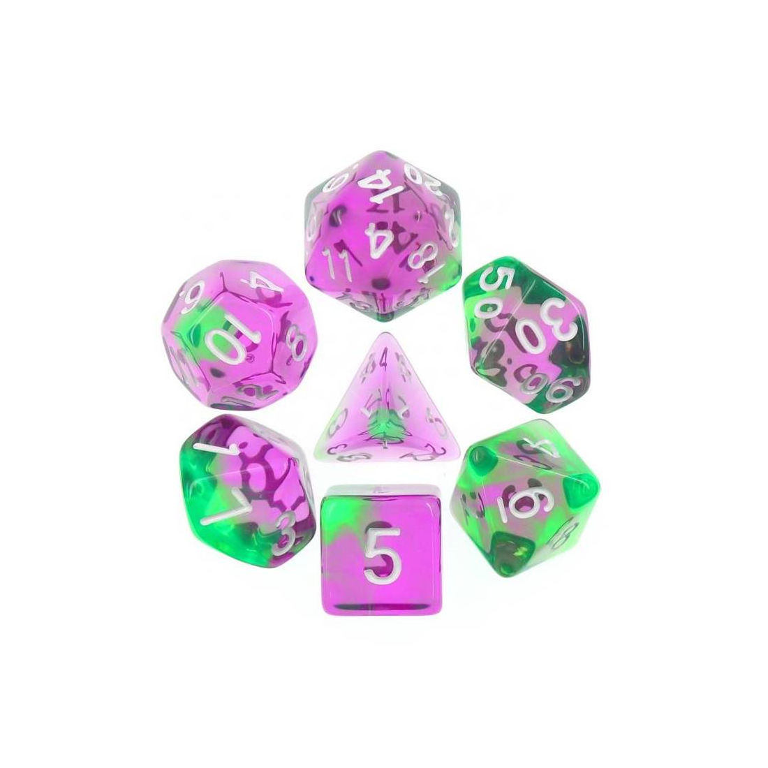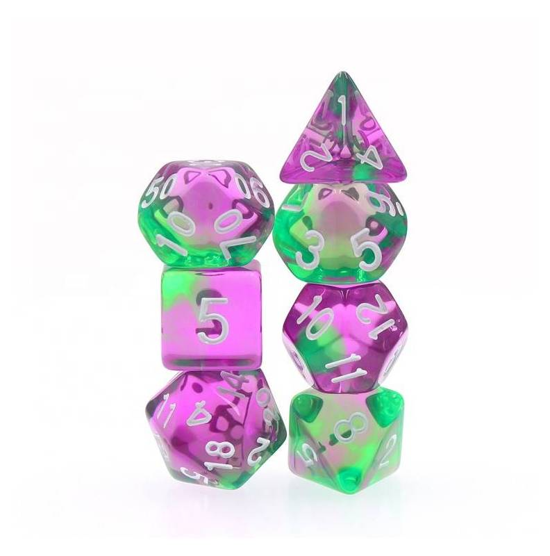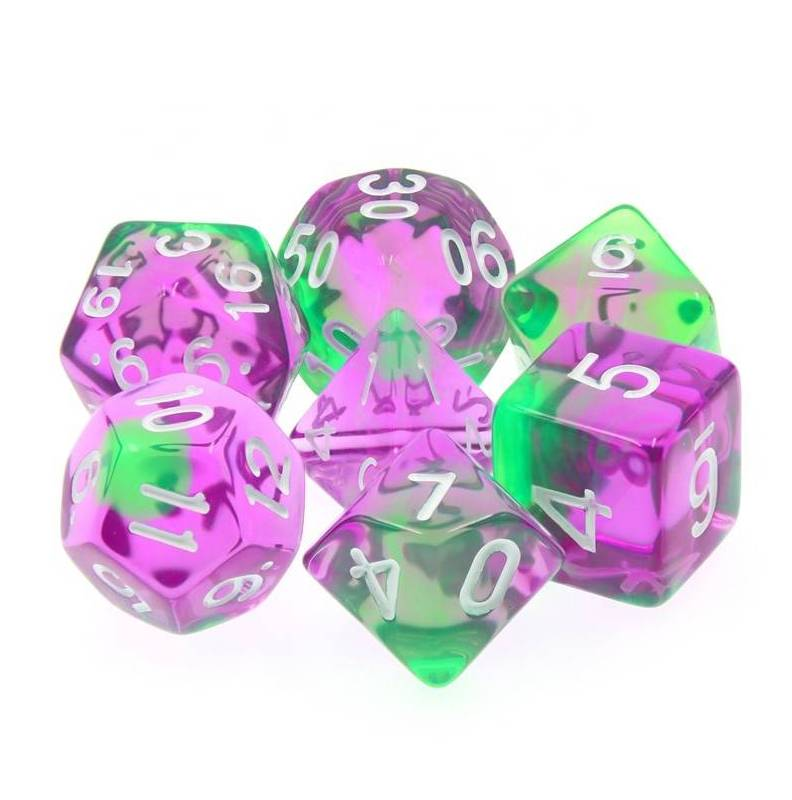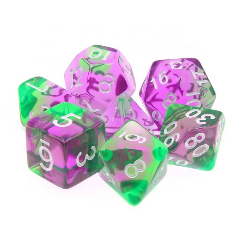 Abyss - fioletowo zielone kości do gier fabularnych (RPG) - 7 sztuk w zestawie.