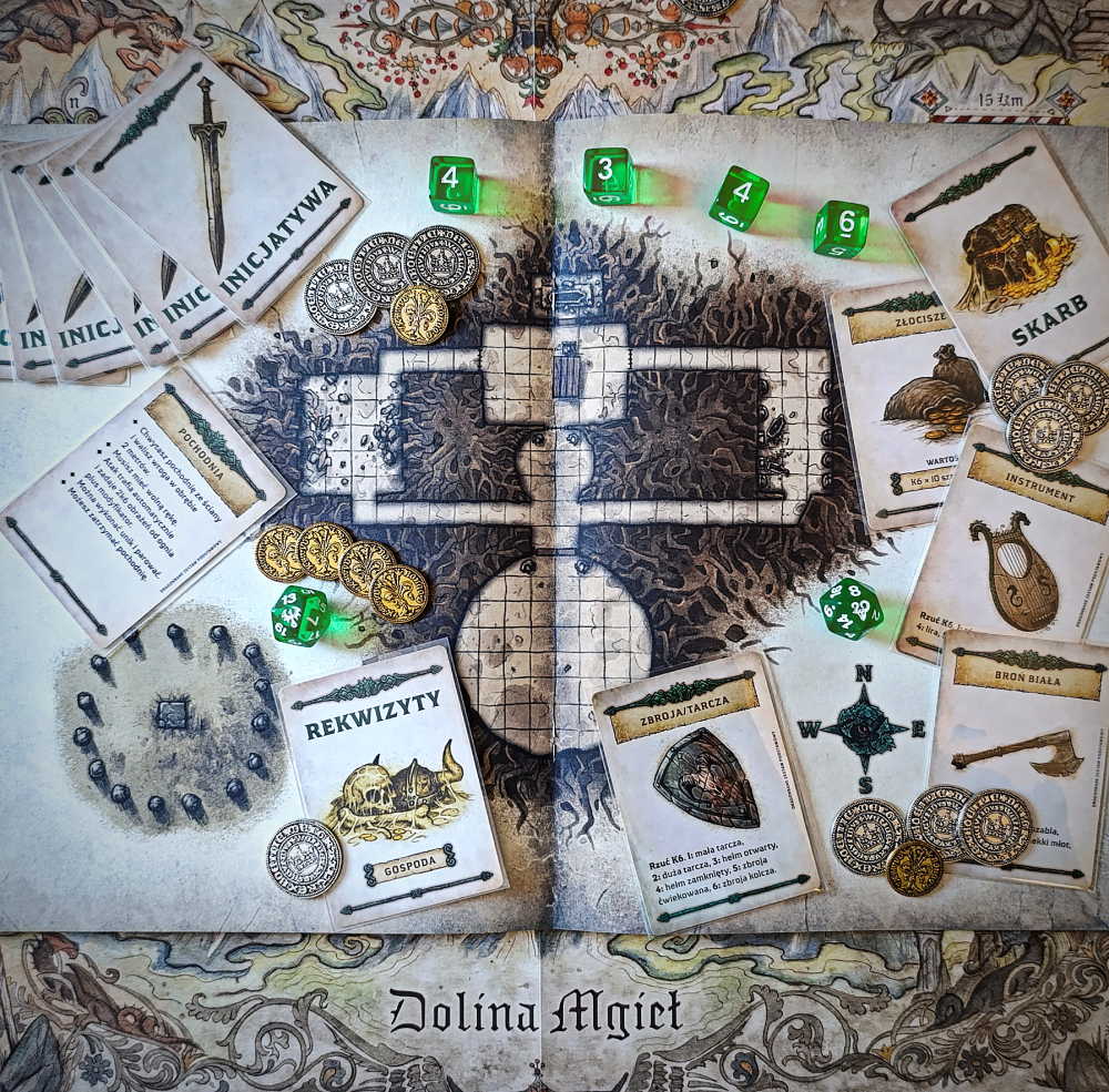 Rekwizyty natomiast, to elementy, które pojawiają się w nowych zwiedzanych lokacjach losowo, aby je urozmaicić i które jednocześnie dają BG szansę na ich wykorzystanie. Dzielą się na trzy kategorie: Gospoda, Jaskinia i Puszcza. W każdej kategorii jest 6 Rekwizytów, które możemy losować lub wybierać, wykładając je na planszę. Każdy Rekwizyt posiada instrukcję, jak go można wykorzystać, chociaż nie trzeba sztywno się go trzymać — gracze z pewnością wymyślą własne kreatywne sposoby na ich użycie.