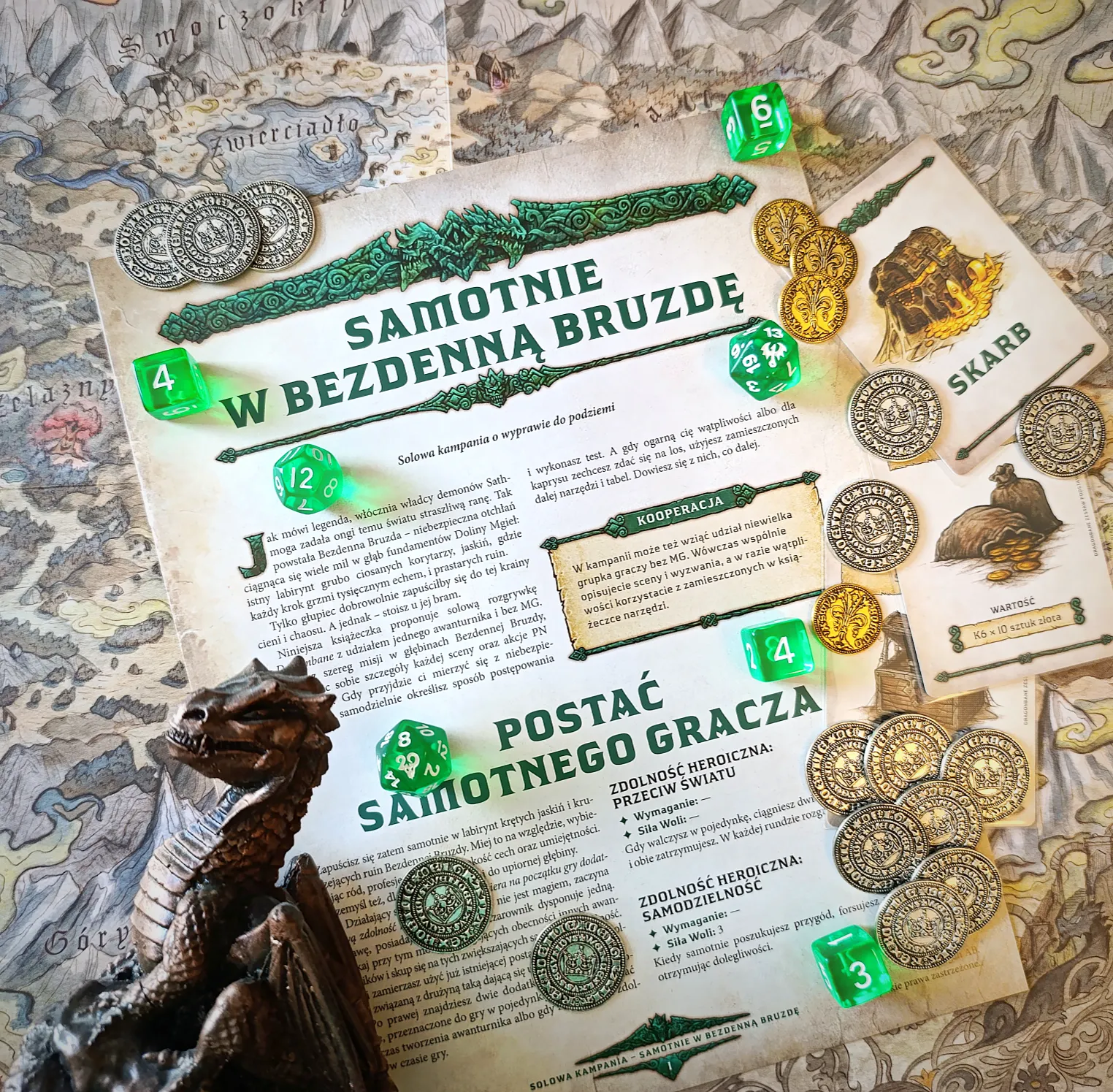 Szczerze mówiąc, zawsze miałem dość sceptyczne podejście do solo rpgowania. Wiem, że są planszówki dungeoncrawlowe, w które można grać samemu lub książki paragrafowe. Jednak biorąc pod uwagę moje ogólnie pozytywne wrażenia z systemu Dragonbane, postanowiłem wziąć moduł Samotnie w Bezdenną Bruzdę do przetestowania.