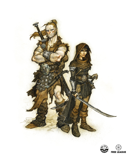 Każda przygoda rozpoczyna się od twojego bohatera. W Dragonbane tworzenie postaci zaczyna się od wybrania Rodu. W podstawce mamy dostęp do sześciu rodów: Ludzie, Elfy, Krasnoludy, Niziołki, Kaczory i Wilkoludy. W Bestiariuszu, dostępnym jeszcze przez chwilę tylko w wersji angielskiej, jest jeszcze dziewięć grywalnych Rodów: Orki, Gobliny, Hobgobliny, Ogry, Kotoludy, Jaszczurianie, Żabianie, Satyry oraz Karkioni (rasa kotopodobnych humanoidów ze skrzydłami). Ród postaci w tym systemie jednak jest bardziej elementem fabularnym, niż mechanicznym. Jedyne, na co wpływa, to na jedną początkową Zdolność Heroiczną (o których opowiem później).