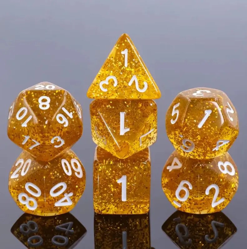 Jedną z największych przyjemności podczas wieczornej sesji jest piwko. Spożycie go bywa przeżyciem zgoła mistycznym, jest więc także wielce prawdopodobne, że te piękne kostki o barwie bursztynowego trunku, a dodatkowo pełne brokatu, wniosą jeszcze więcej magii do Waszych sesji! Solidnie i precyzyjnie wykonane kości, dostępne są w wielu różnych barwach.