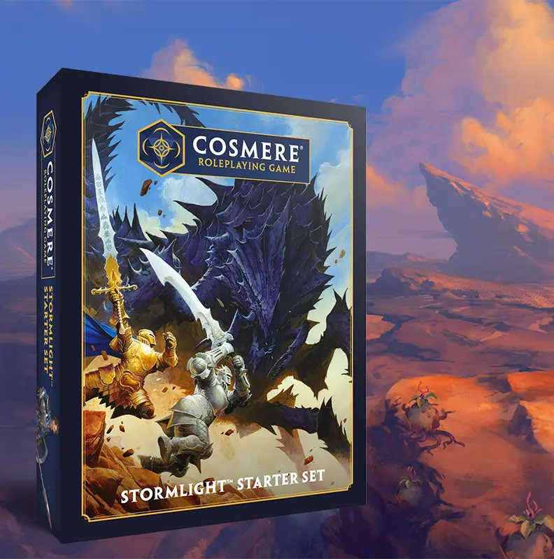 Cosmere RPG to oficjalna gra fabularna, która przenosi graczy do rozległego uniwersum Cosmere, stworzonego przez Brandona Sandersona – autora bestsellerowych cykli Archiwum Burzowego Światła, Z Mgły Zrodzonego, Elantris i wielu innych powieści. To świat (a raczej zbiór światów) pełen niezwykłych systemów magii, głębokich intryg, potężnych bohaterów i kosmicznych tajemnic.