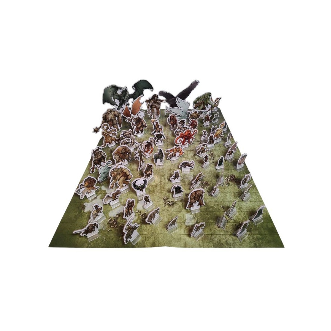 From cat people to chimeras, fairies to frog people, hippogriffs to hydras, and many more – this set contains no less than 64 beautifully illustrated cardboard standees of fantastic creatures from the Dragonbane Bestiary.