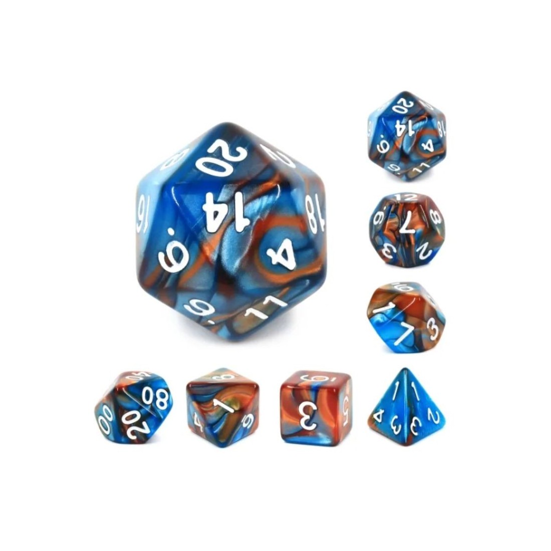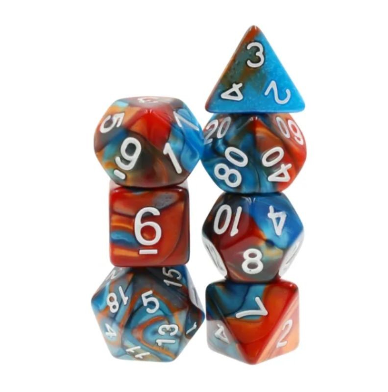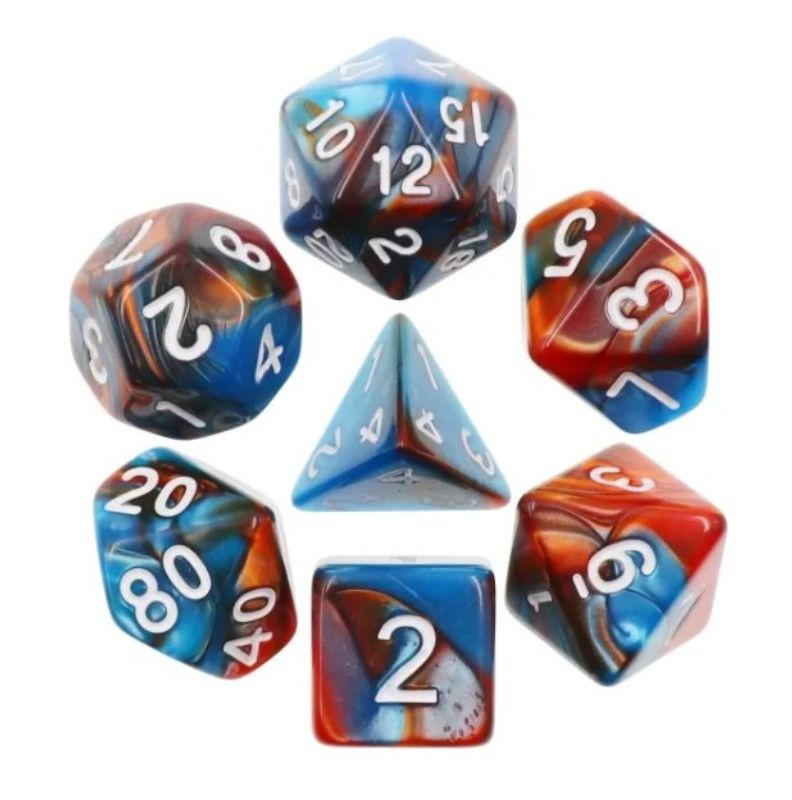 Niebiesko-brązowe kości do gier fabularnych (RPG) - 7 sztuk w zestawie.