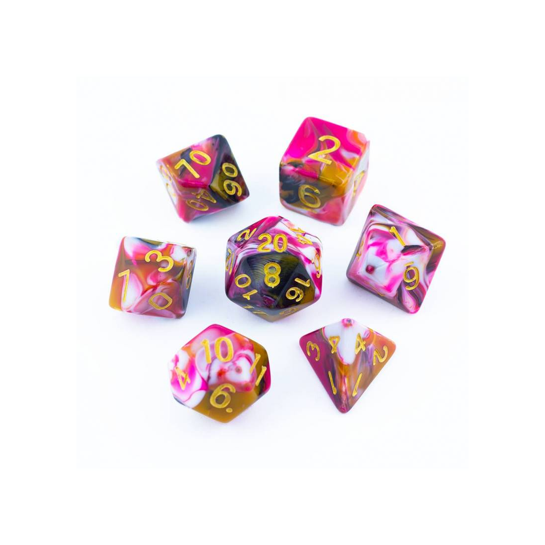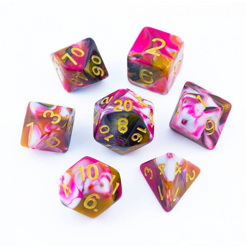 Dynamiczne łączenie trzech kolorów nadaje tym kościom wyjątkowej wyrazistości, dzięki czemu nie znajdziesz dwóch identycznych egzemplarzy! Solidnie i precyzyjnie wykonane kości, dostępne są w wielu różnych barwach.