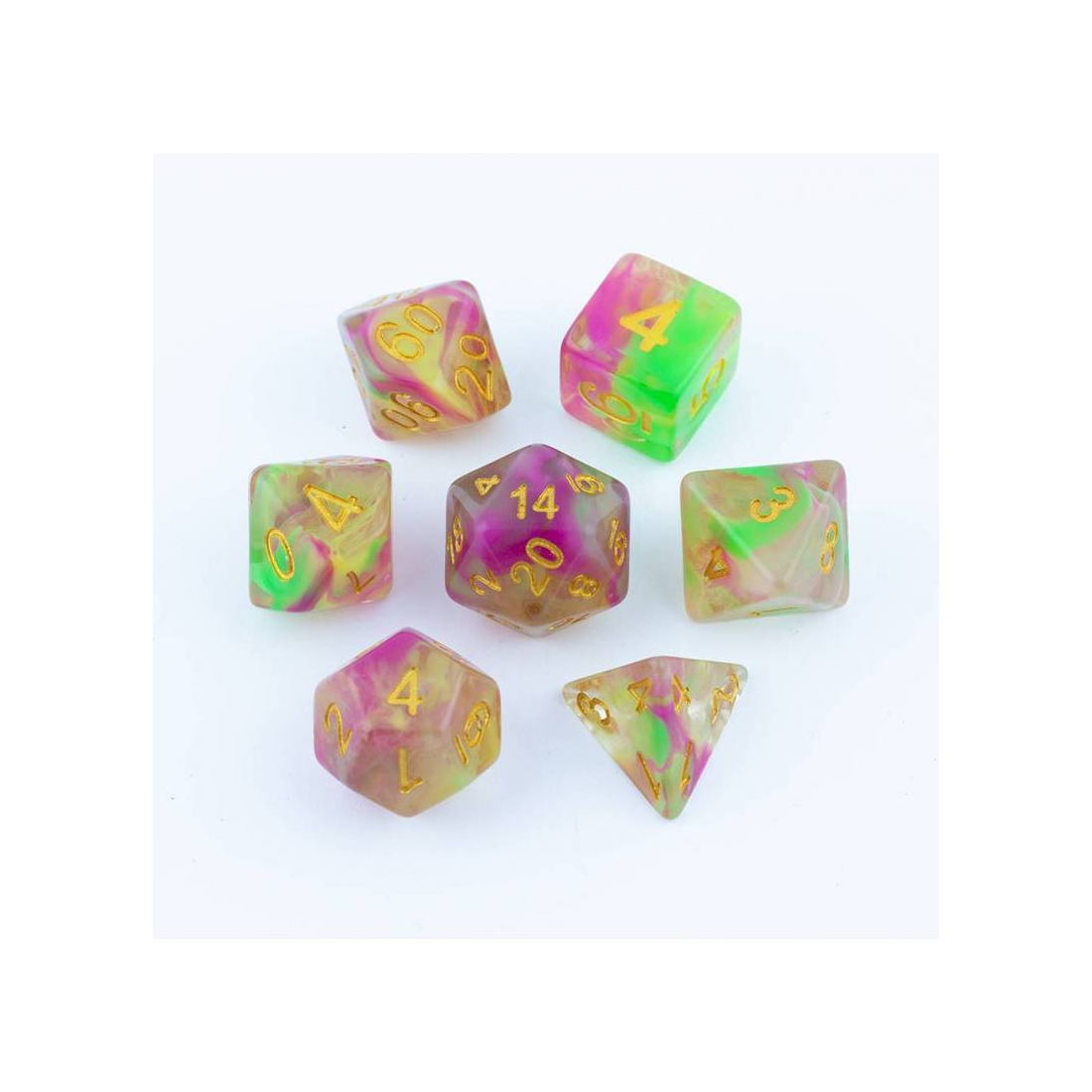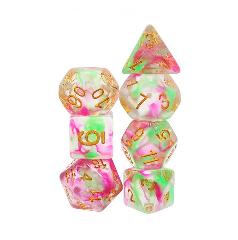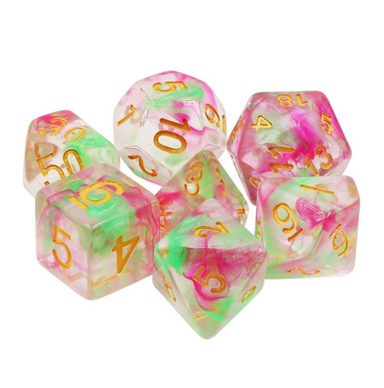 Tęczowe kości do gier fabularnych (RPG) - 7 sztuk w zestawie.