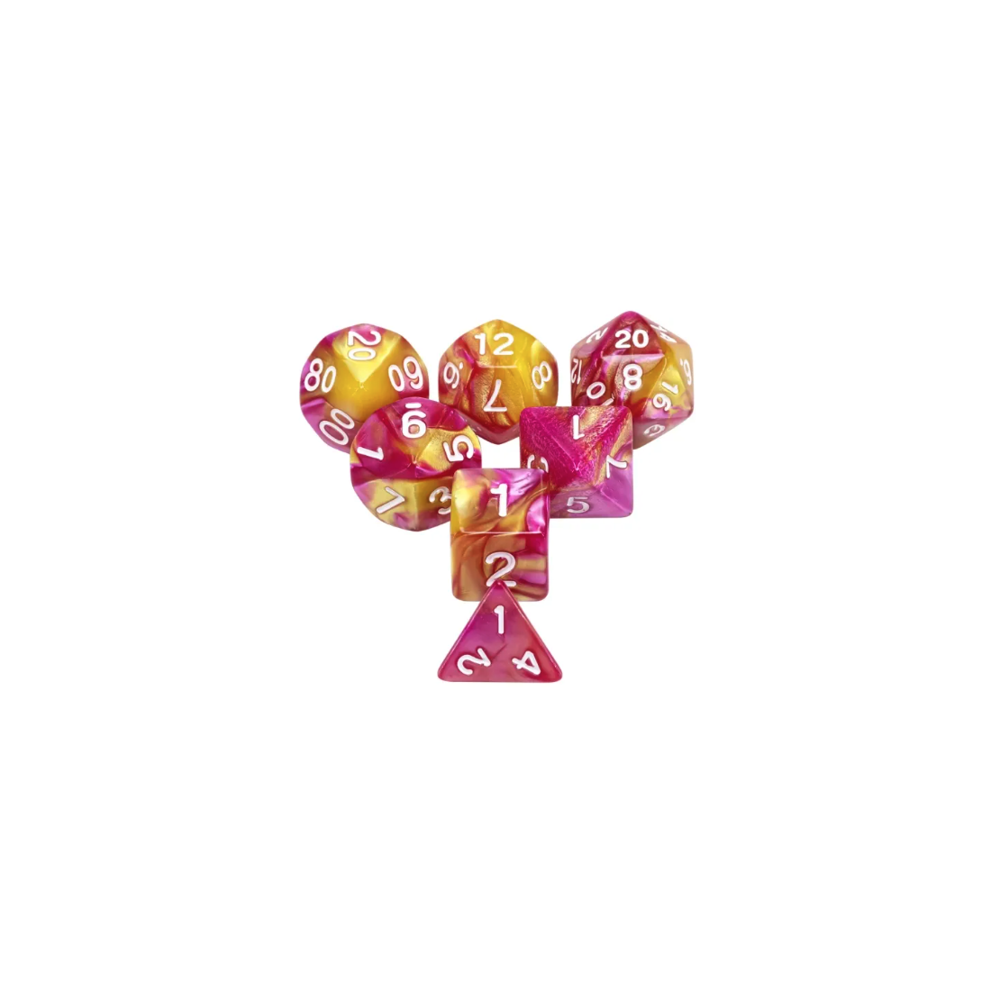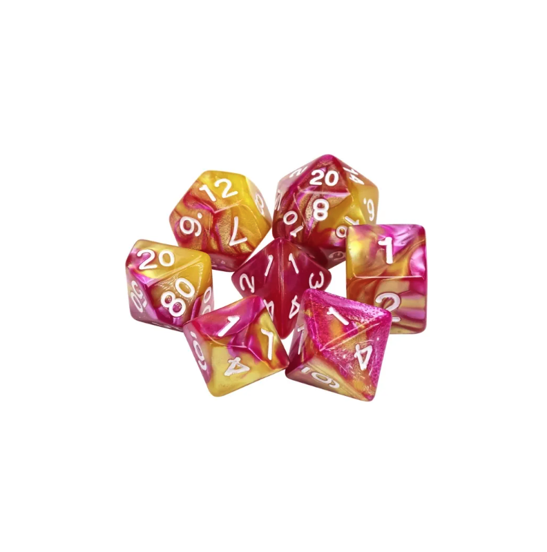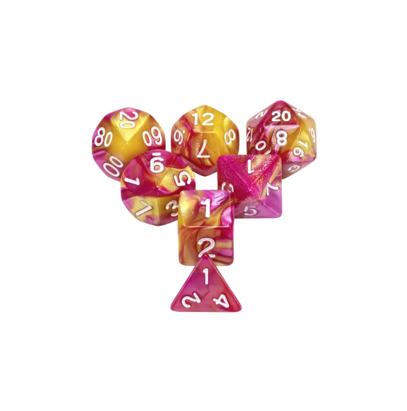 Różowo-złote kości do gier fabularnych (RPG) - 7 sztuk w zestawie.