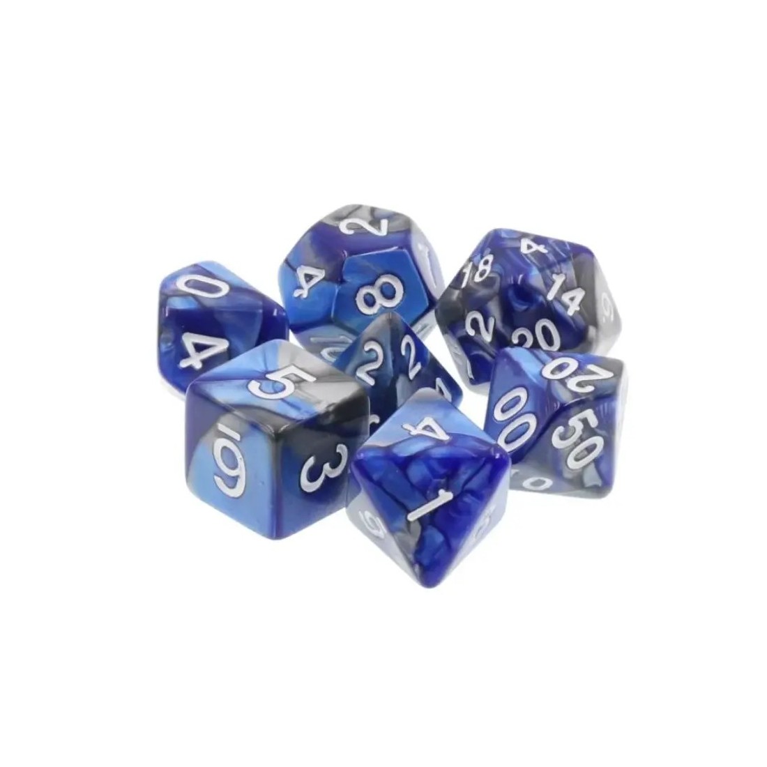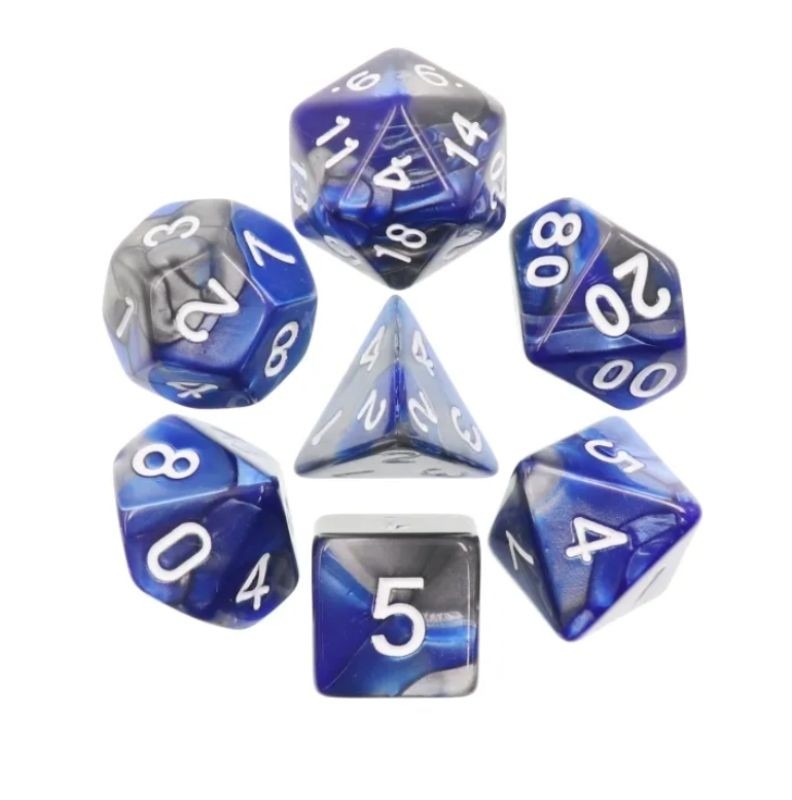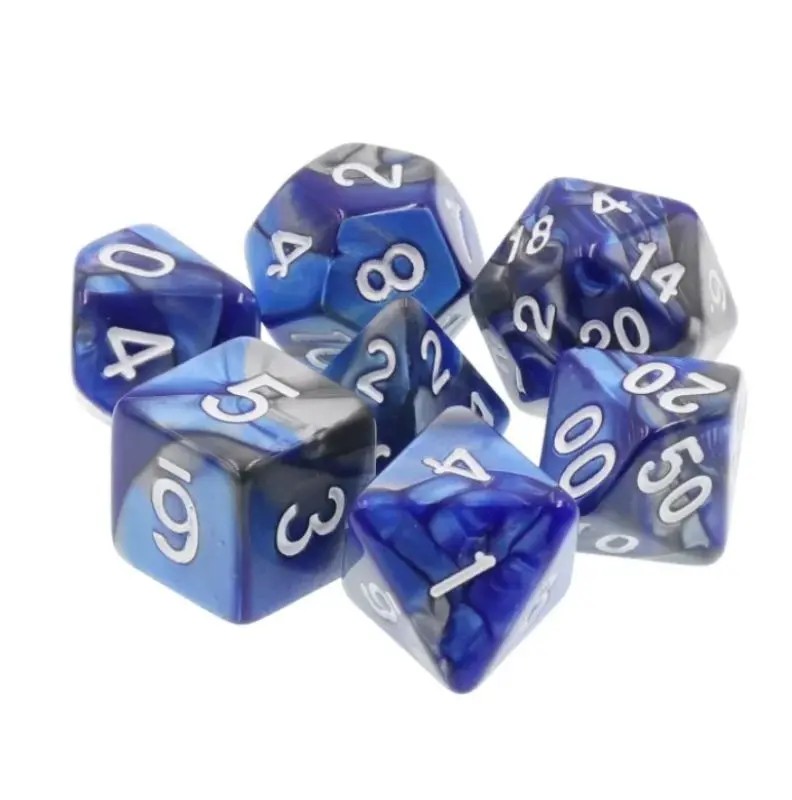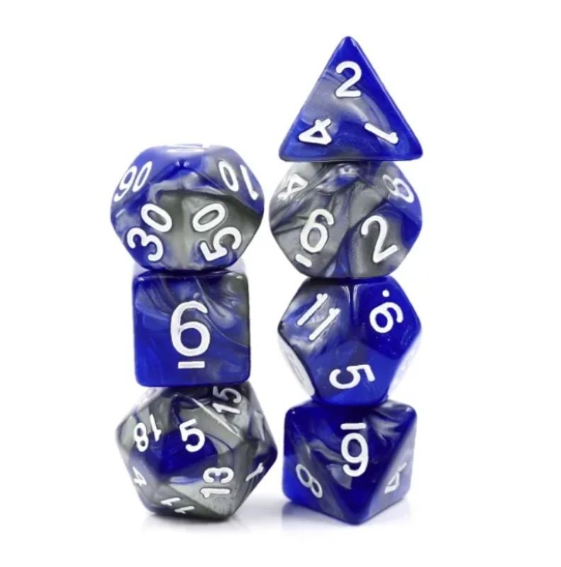 Ciemnoniebiesko-szare kości do gier fabularnych (RPG) - 7 sztuk w zestawie.