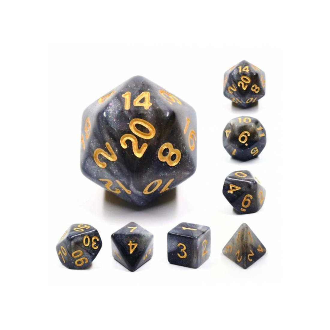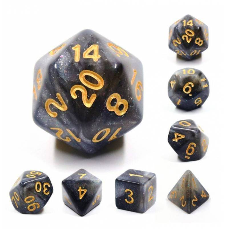 Galaktyczne srebrno - szare kości do gier fabularnych (RPG) - 7 sztuk w zestawie.