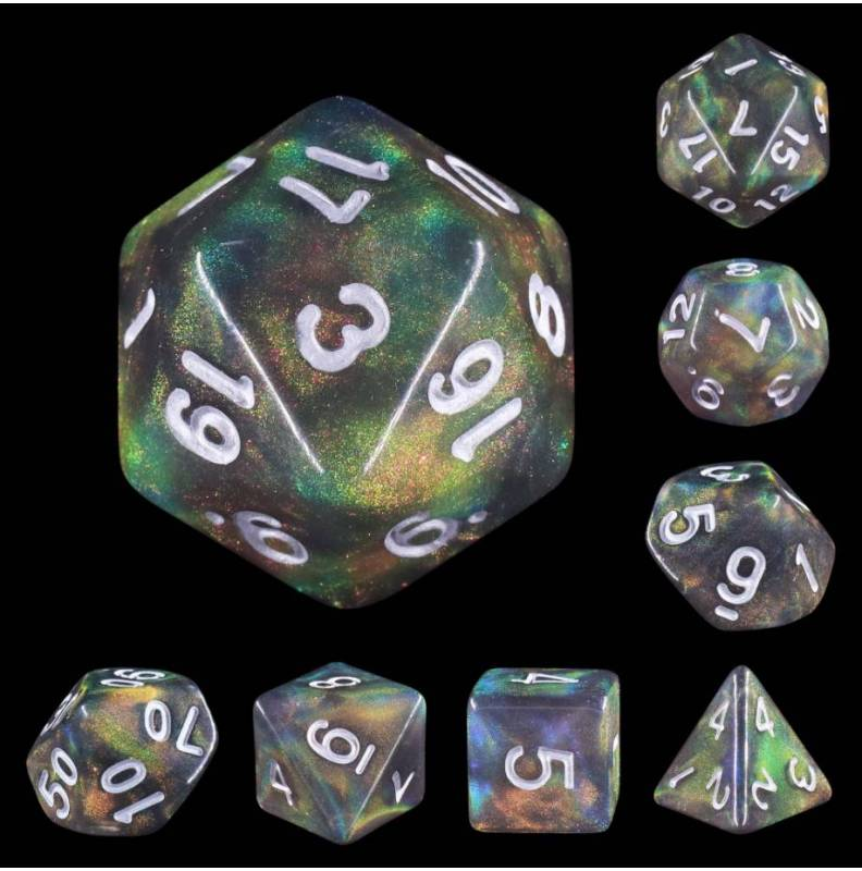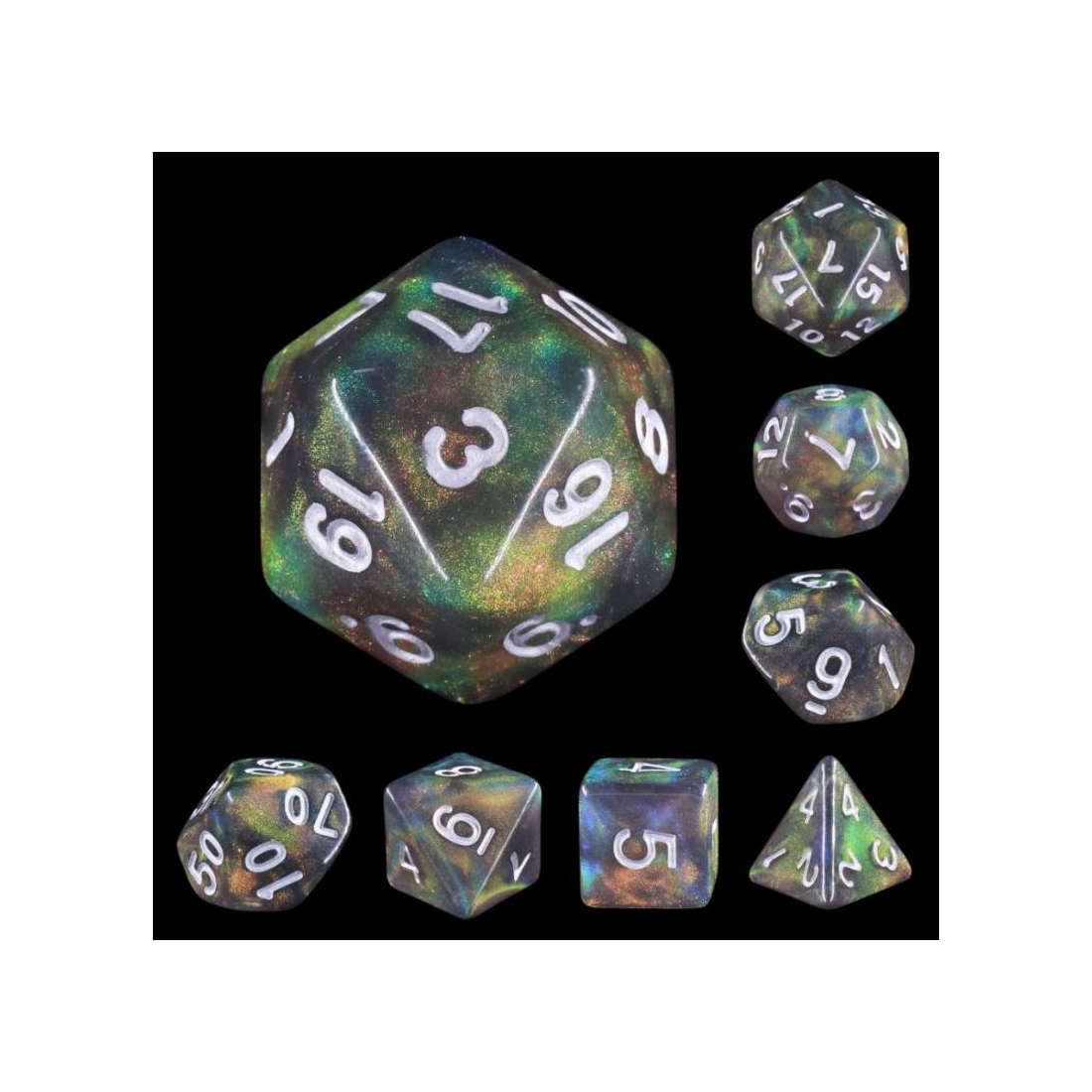 Galaktyczne tęczowe kości do gier fabularnych (RPG) - 7 sztuk w zestawie.