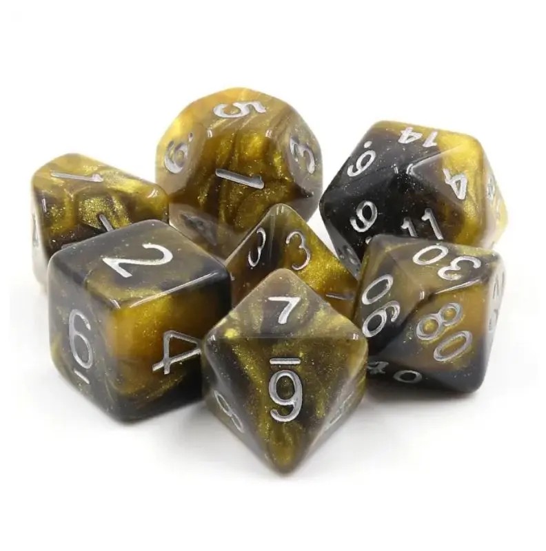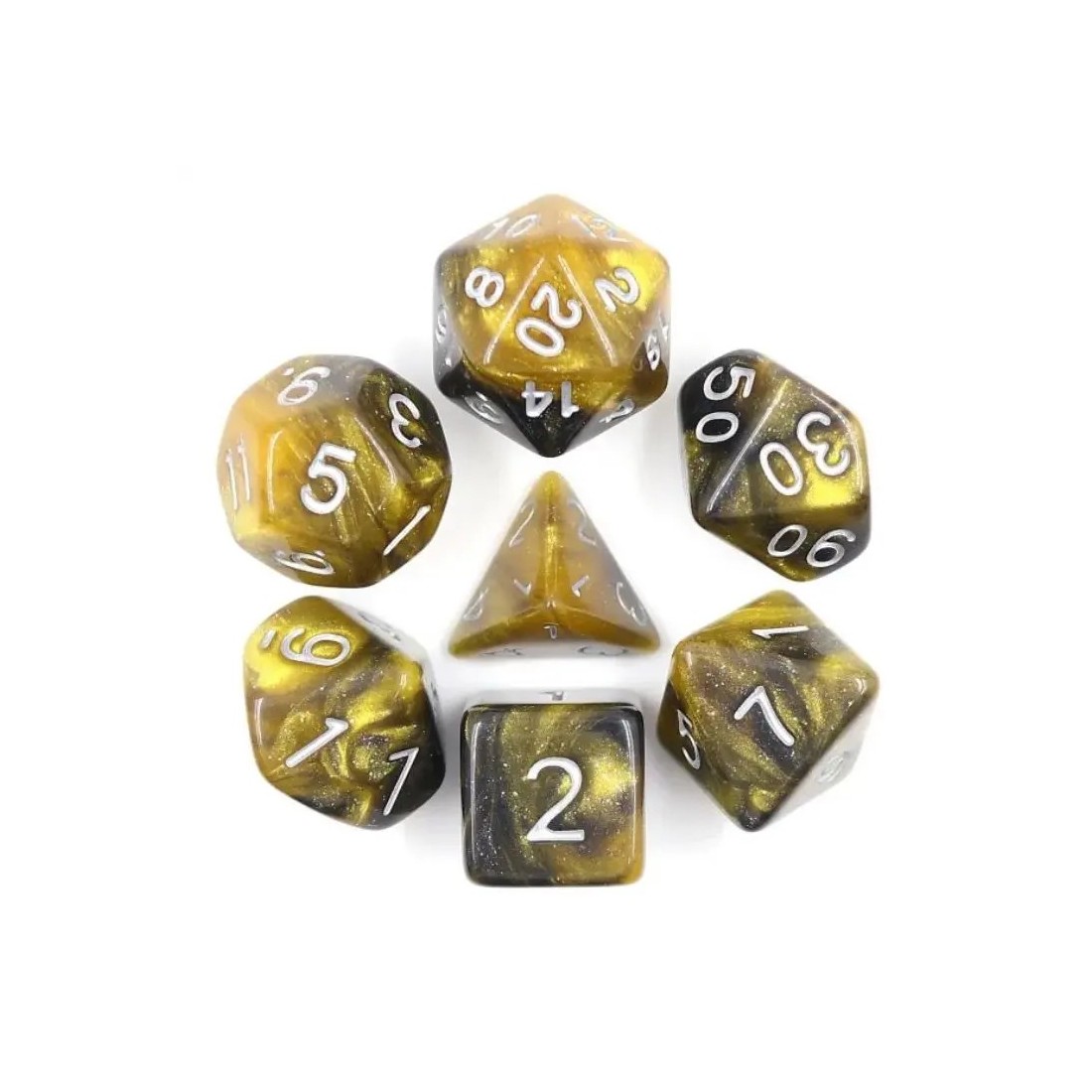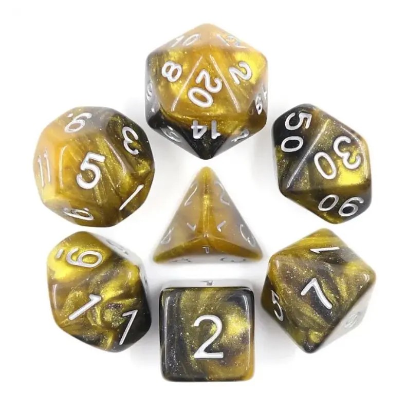 Galaktyczne złoto-czarne kości do gier fabularnych (RPG) - 7 sztuk w zestawie.