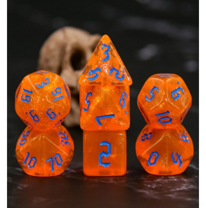 Galaktyczne pomarańczowe kości do gier fabularnych (RPG) - 7 sztuk w zestawie.
