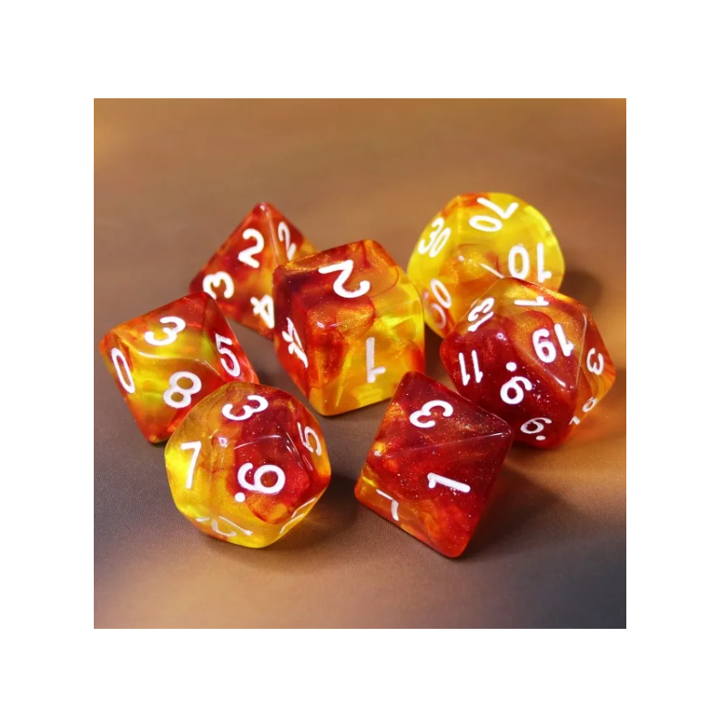 Galaktyczne czerwono-żółte kości do gier fabularnych (RPG) - 7 sztuk w zestawie.