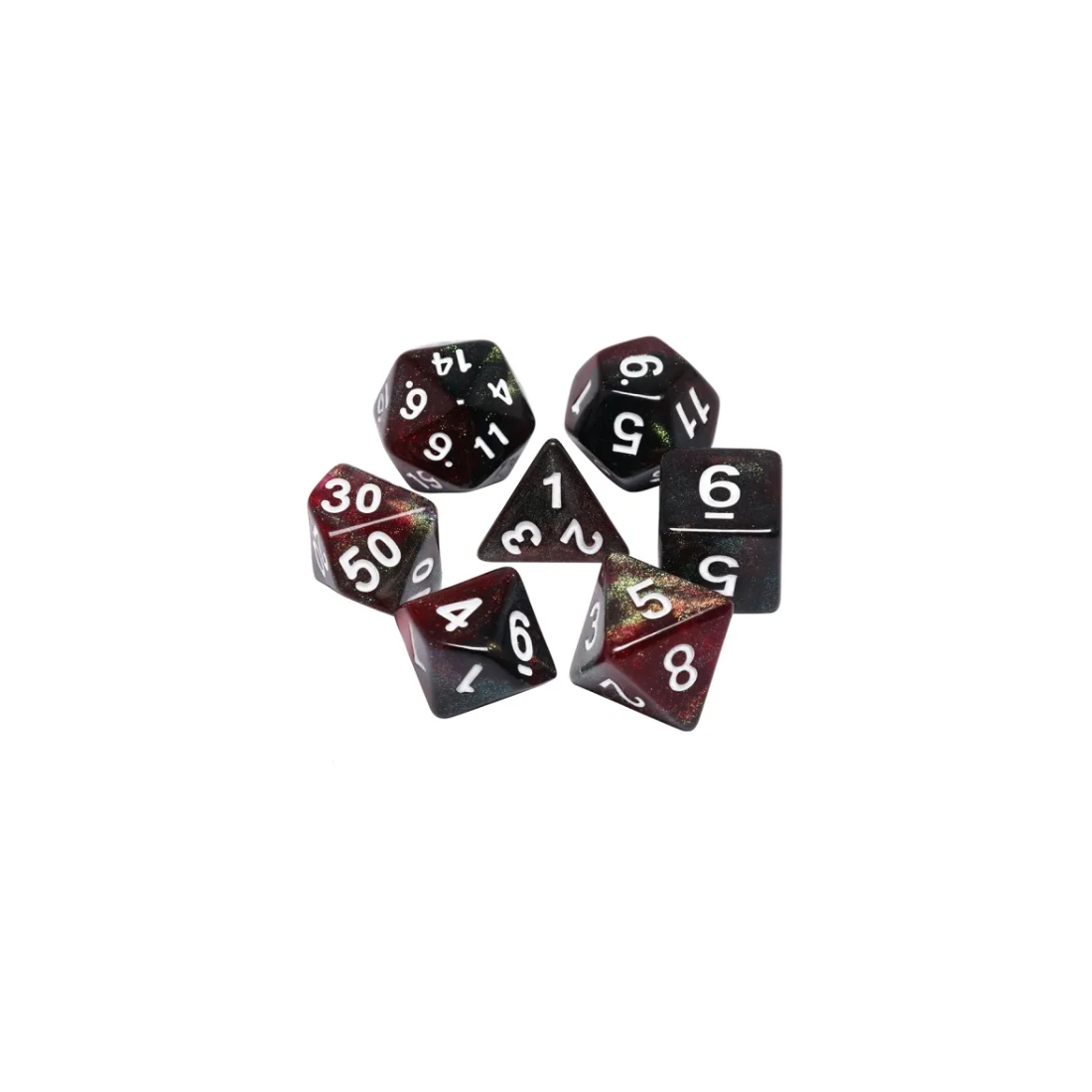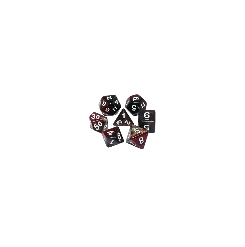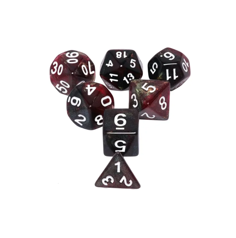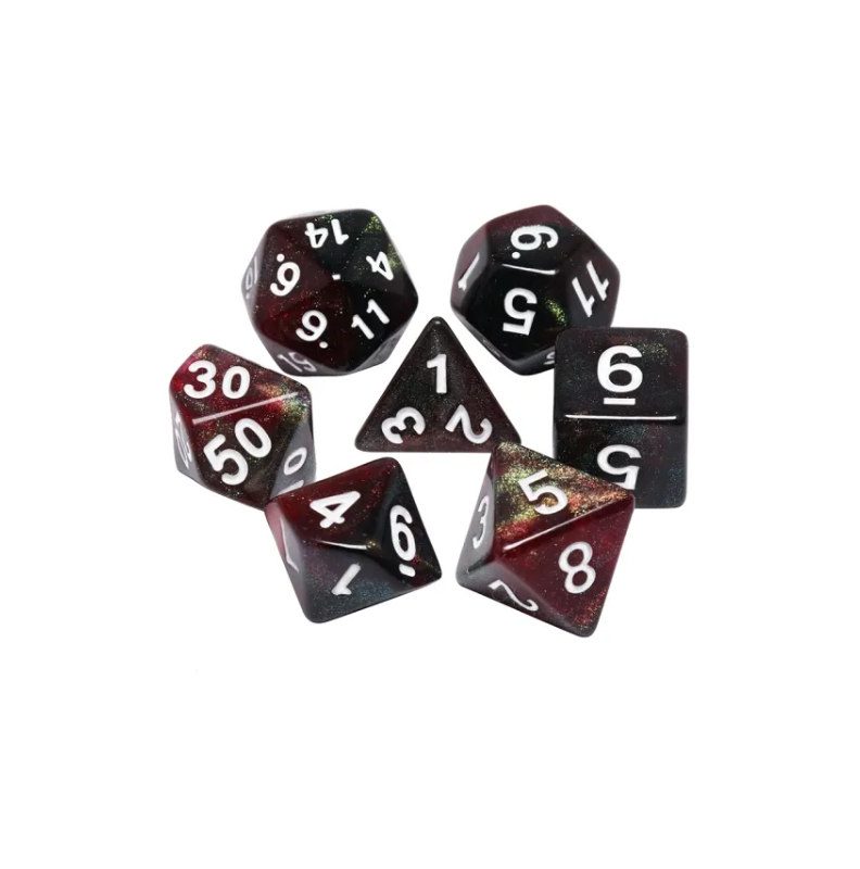 Galaktyczne ciemnoczerwone kości do gier fabularnych (RPG) - 7 sztuk w zestawie.