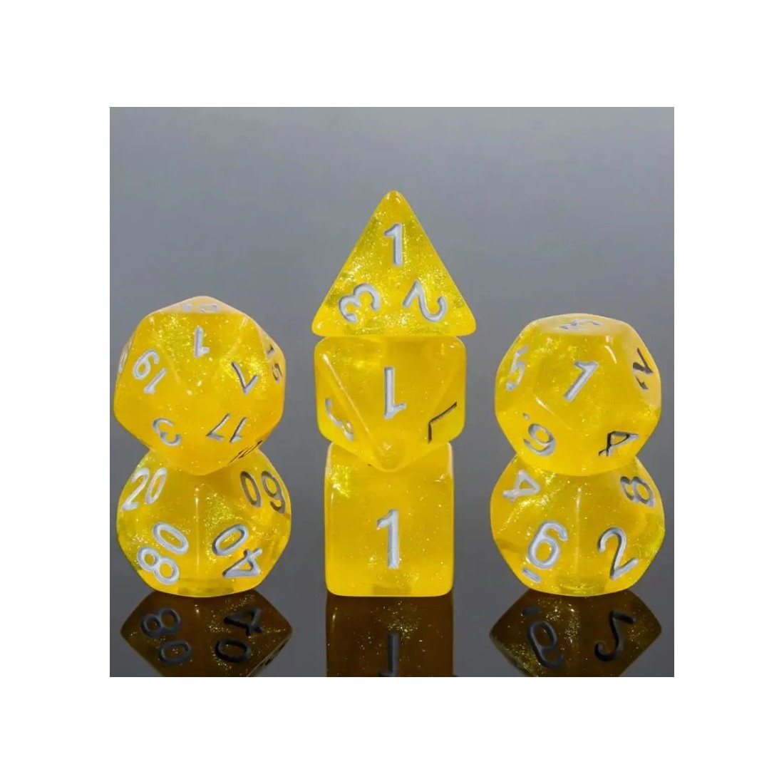 Galaktyczne, żółte kości do gier fabularnych (RPG) - 7 sztuk w zestawie.