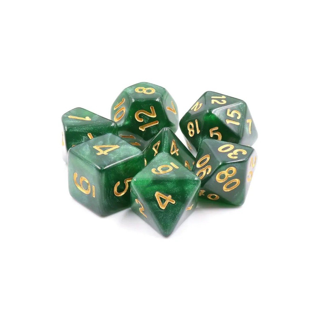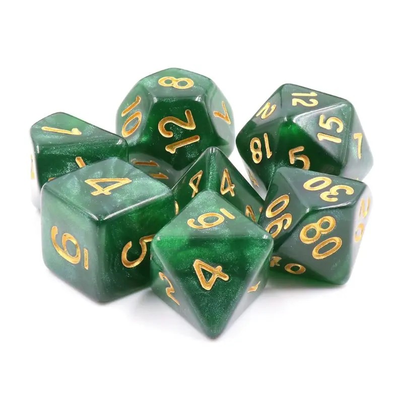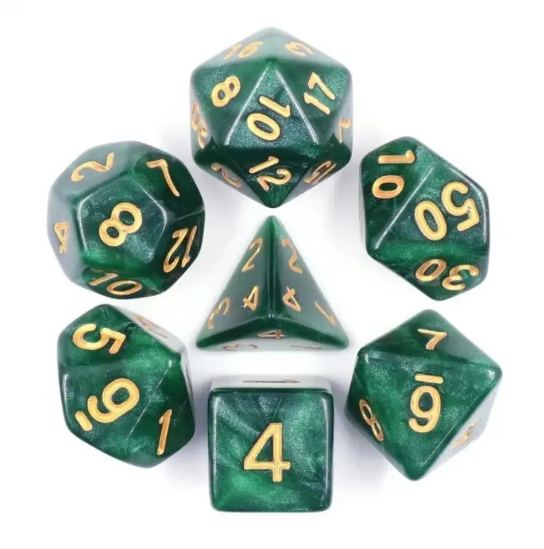 Ciemnozielone kości do gier fabularnych (RPG) - 7 sztuk w zestawie.
