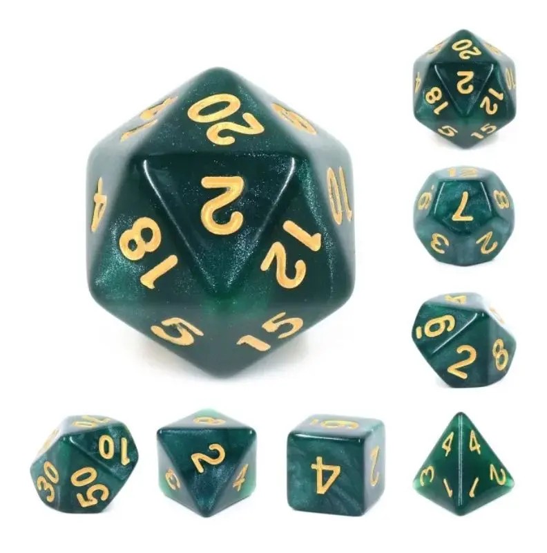 Ciemny las, a wewnątrz złote blaski - czy to sam Król Drzew kryje się w zieleni? Stonowane, ale z charakterem - takie są te solidne, precyzyjnie wykonane kości. Każdy zestaw jest niepowtarzalny.