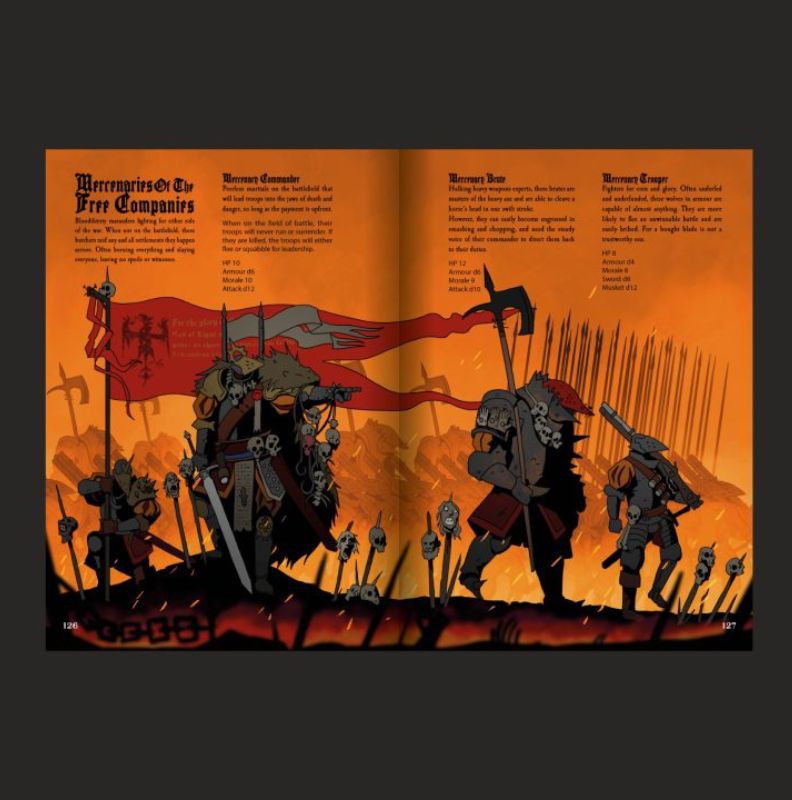 Embark on a dark and daring adventure where death and destruction lurks around every corner. The gunpowder and witchcraft infused game is a complete stand-alone RPG based on and compatible with the multi-award-winning apocalyptic heavy metal RPG MÖRK BORG. This action packed, rules light, art heavy OSR game offers swashbuckling adventure and gothic folk horror in an unholy blend.