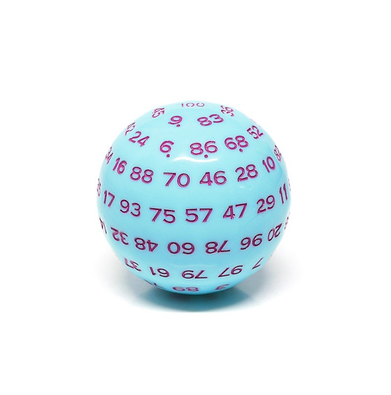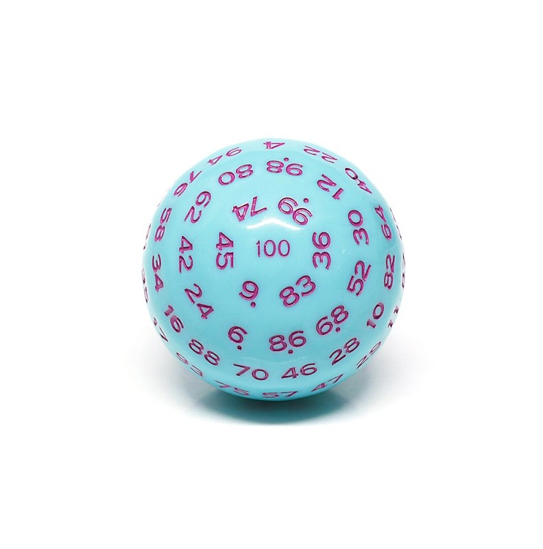 Błękitno - fioletowe kość k100 do gier fabularnych (RPG), 1 sztuka w zestawie. Średnica 49 mm. Dynamiczne łączenie dwóch kolorów nadaje tym kościom wyjątkowej wyrazistości.