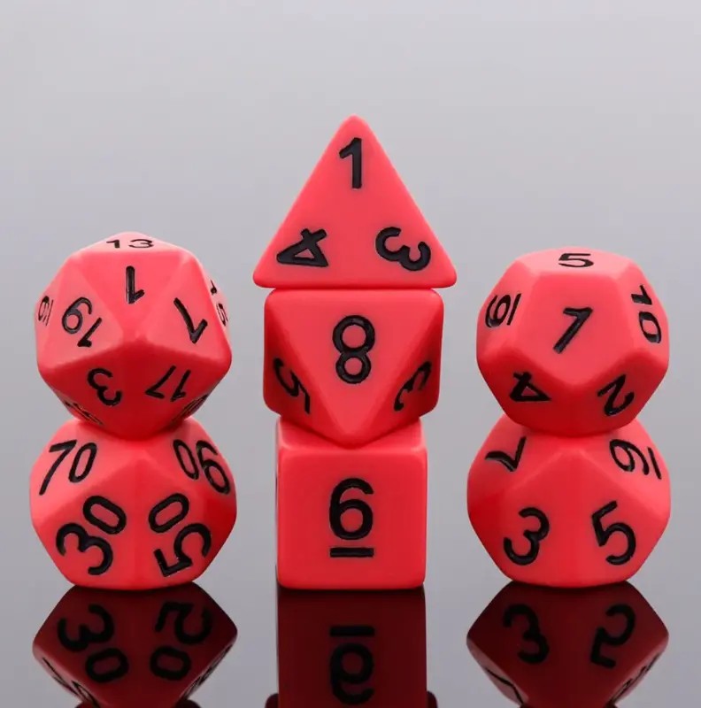 Czy to kości z tej samej substancji co wampirze korale? Nie wiadomo, ale jeśli szukasz bardzo czytelnych, prostych kości do rzucania z dużymi cyframi, to te są w sam raz! Zbyt czerwono? Sprawdź matowe kości w innych kolorach!