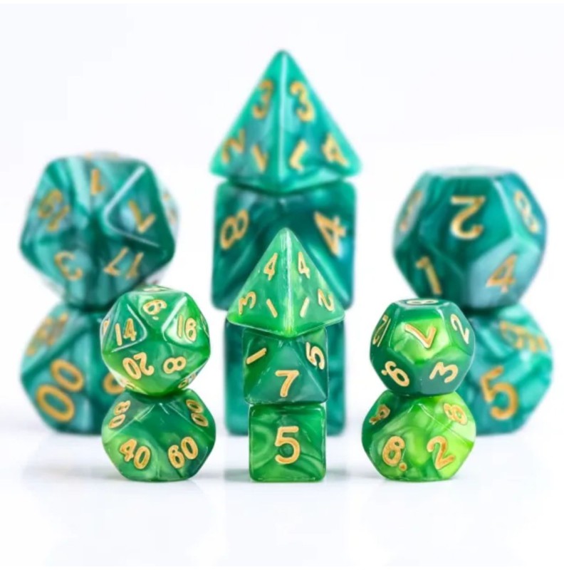 Kości wysyłane w woreczkach strunowych, zawierają 7 kości: k4, k6, k8, k10 (jedności), k10 (dziesiątki), k12, k20 w rozmiarze MINI.