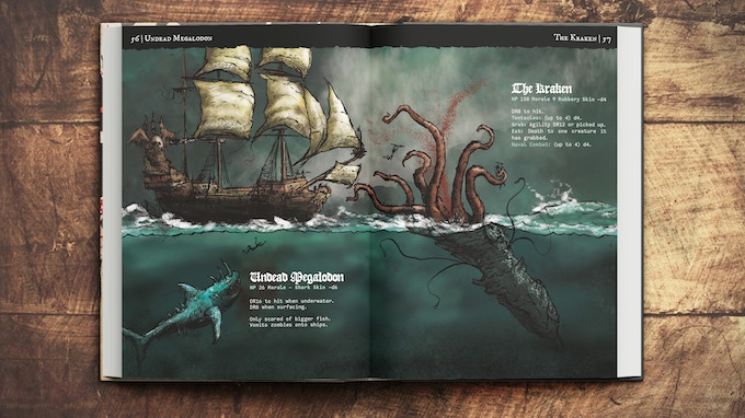 PIRATE BORG is a scurvy-ridden, rules light, art heavy tabletop RPG. Inspired by history, fantasy, horror and rum. Your cutlass & flintlock won’t save you from the hordes of skeletons, the Kraken, or even your own crew.