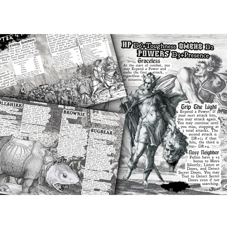 Mörk Manual is a single-volume game, including all rules and adversaries needed to get you started. A compendium of classic classes, scrolls, and slightly modified rules to fit classic fantasy gaming into the Mörk Borg system. The world is familiar but different... You'll count down the fulfillment of prophecies predicting the return of the Dark Lord while battling his minions to try and prevent that day from arriving.