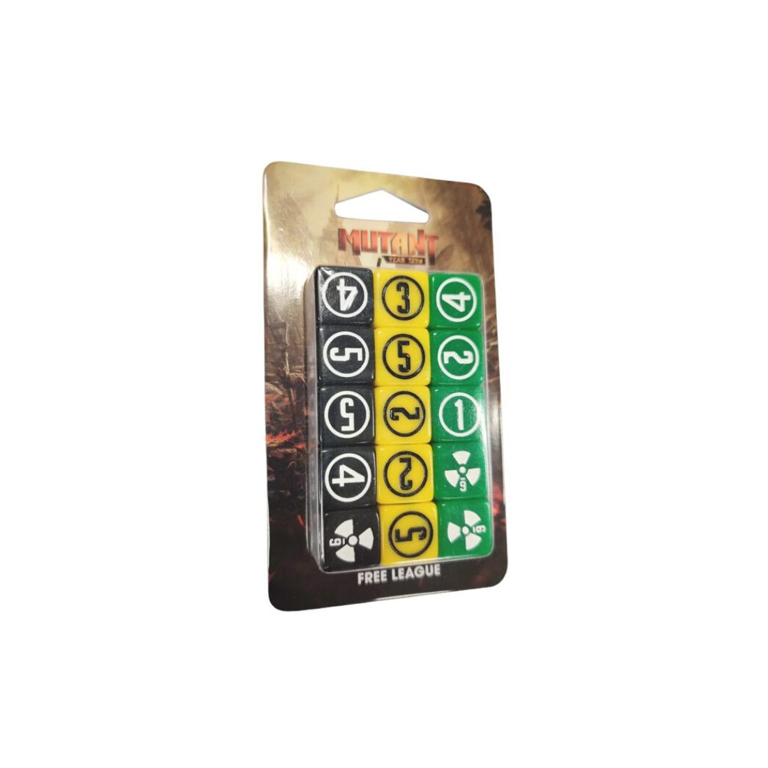 A set of 15 engraved custom dice, designed specifically for Mutant: Year Zero.