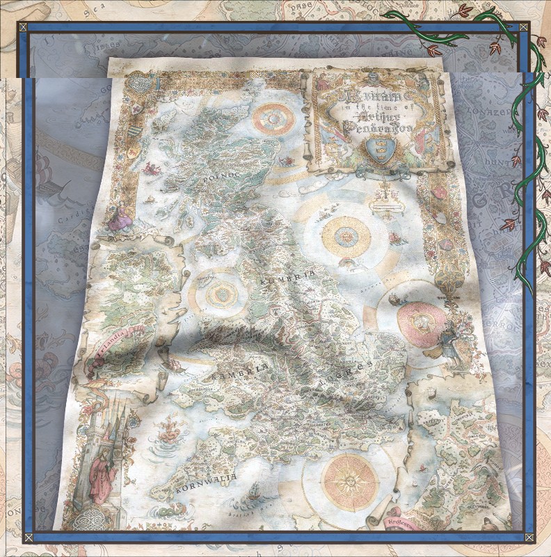 Przepiękna mapa Brytanii czasów Artura Pendragona! Zanurz się w niesamowitym świecie rycerskich pojedynków i przeżyj niesamowite przygody w Brytanii.
