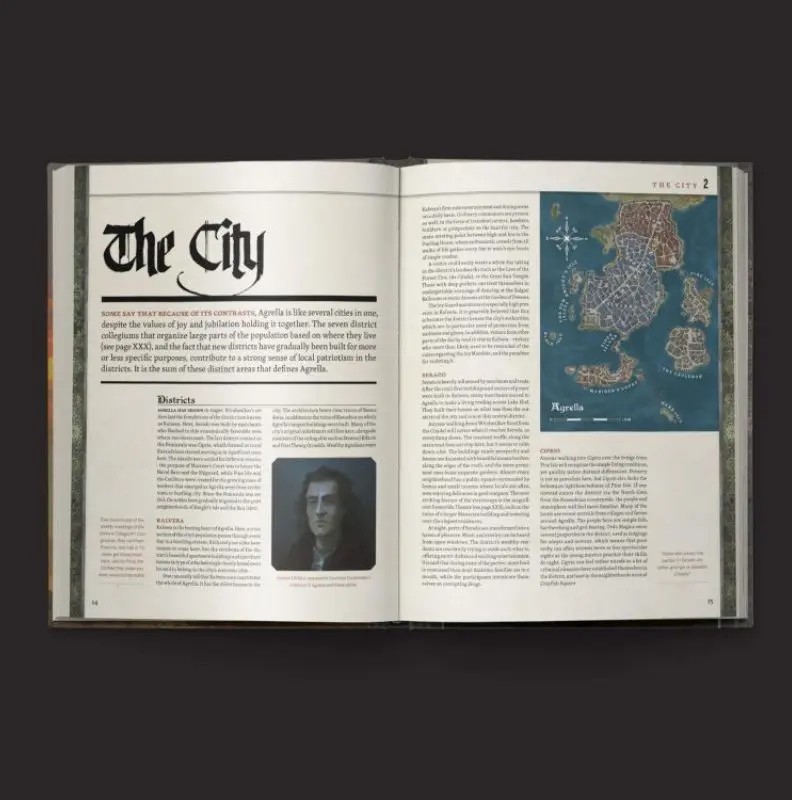 Symbaroum: Agrella – City of Eternal Euphoria brings in a lot of new material, including a three-part campaign named The Outrage of Betrayed Brethren.