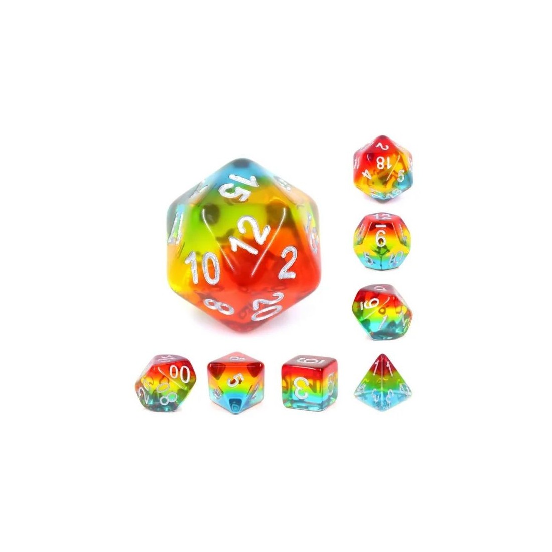 Tęczowe kości do gier fabularnych (RPG) - 7 sztuk w zestawie.