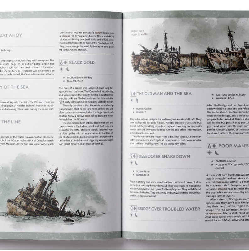Hostile Waters for the new edition of RPG classic TWILIGHT: 2000 is a modular expansion that includes everything you need to play in a marine environment. Hostile Waters is loosely based on Pirates of the Vistula for the first edition of TWILIGHT: 2000 but designed to be used for any waterways.