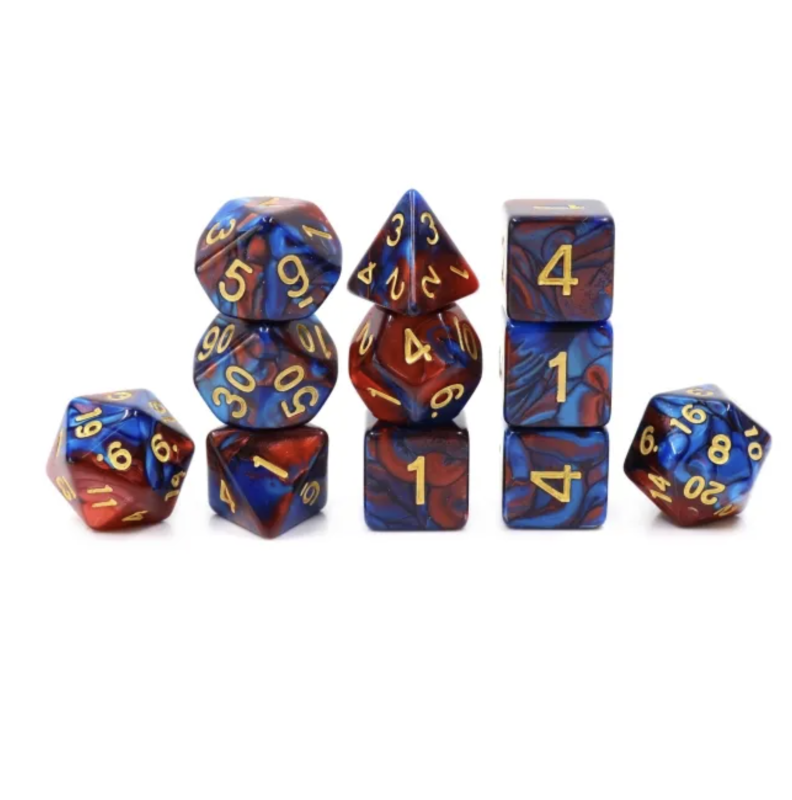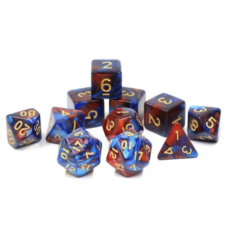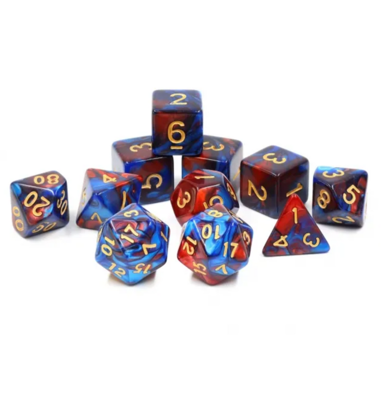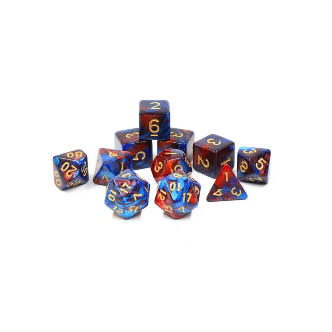 Dwukolorowe kości idealne do rozgrywek w Dunegeons & Dragons, ale też do gier fabularnych (RPG) - 11 sztuk w zestawie.