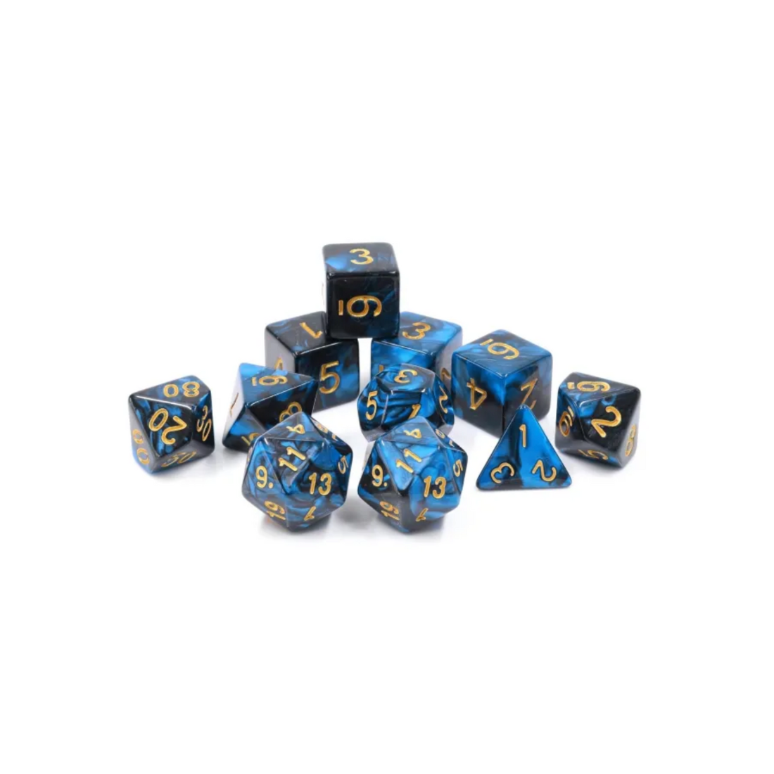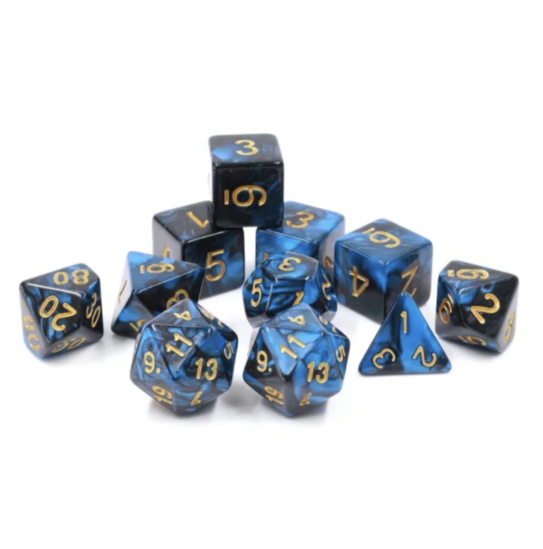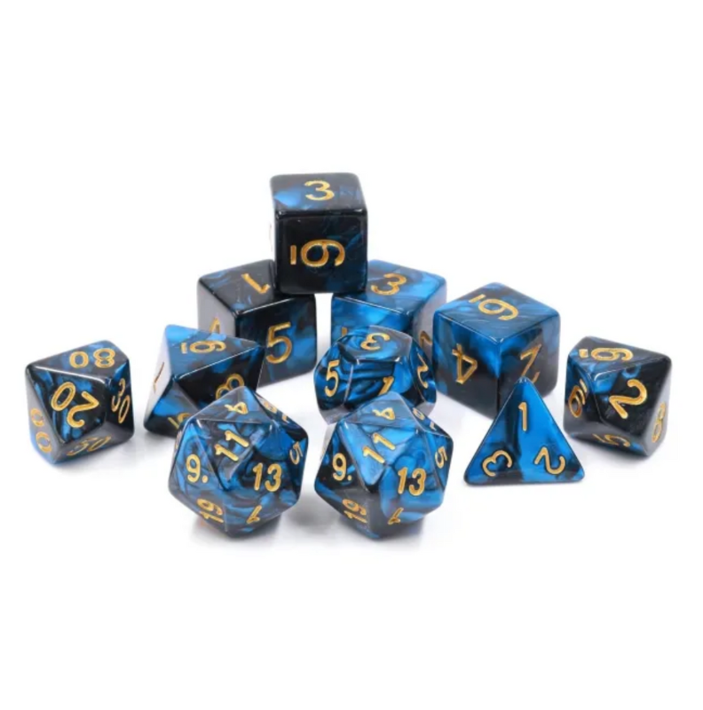 Dwukolorowe kości idealne do rozgrywek w Dunegeons & Dragons, ale też do gier fabularnych (RPG) - 11 sztuk w zestawie.