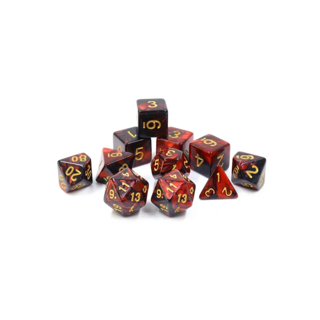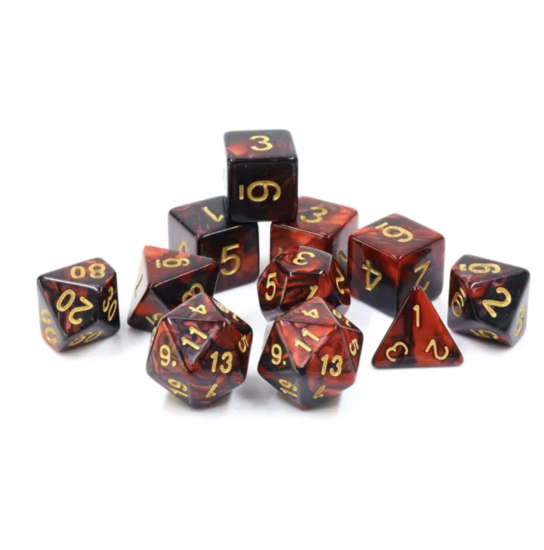 Dwukolorowe kości idealne do rozgrywek w Dunegeons and Dragons, ale też do gier fabularnych (RPG) - 11 sztuk w zestawie.