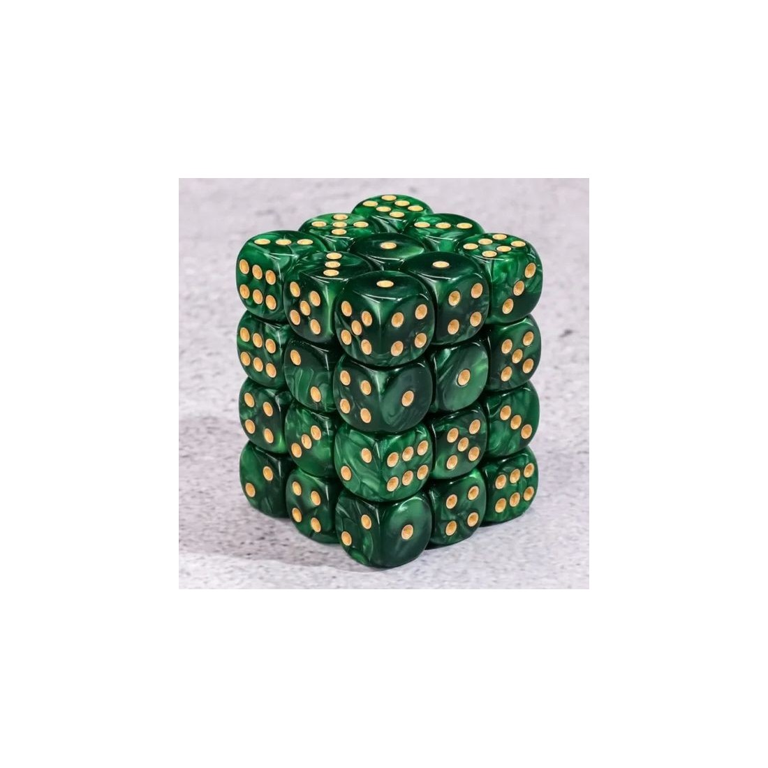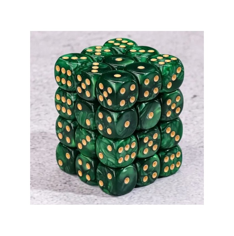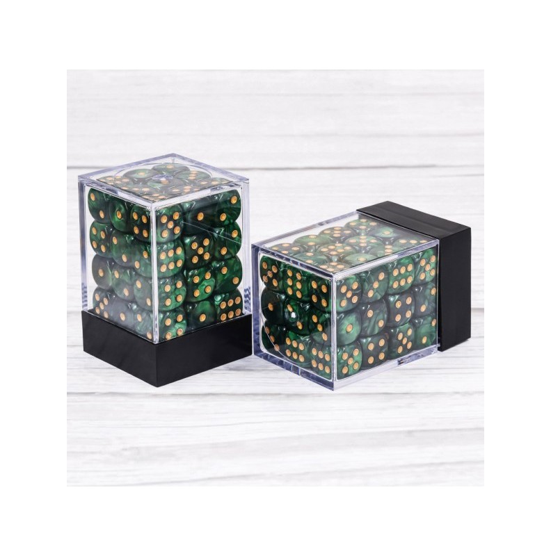 Zielono- czarne kości k6 12mm do gier fabularnych (RPG), planszowych i bitewnych- 36 sztuk w zestawie, zapakowane w plastikowe pudełko w wieczkiem. Dynamiczne łączenie dwóch kolorów nadaje tym kościom wyjątkowej wyrazistości.